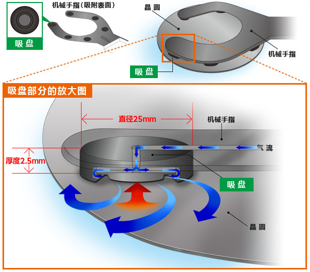 上述气流最终通过机械手指吸附表面和晶圆表面之间的间隙释放到外部空间。