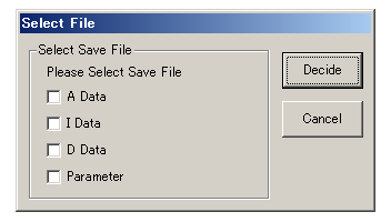 Designate the data file to save “A Data”, “I Data”, “D Data” or Parameter (if it is supported). In the Select File dialog box, select the data (multiple selection is available) and click the [Decide] button.(Figure: 6-4)