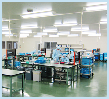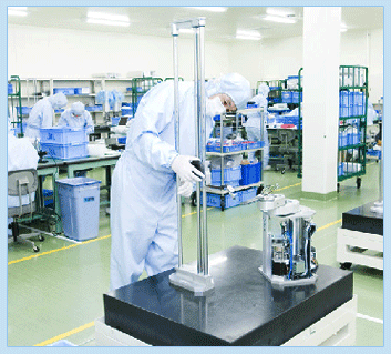 对半导体用机械手及液晶用机械手进行组装,实施性能检验、出厂检验后,向用户配送。 装配有HEPA过滤器(99.97%),每小时换气25次。通过兼用洁净间
